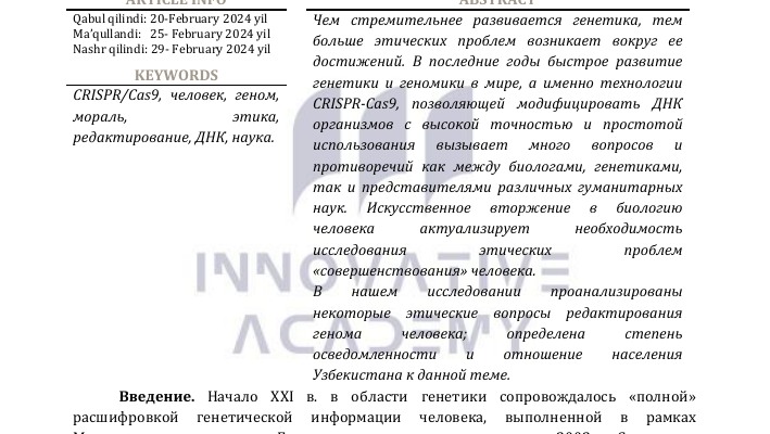 Этические вопросы редактирования генома для “улучшения” человека В эпоху стремительного развития науки и технологий мы, как общество, стоим