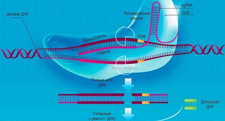 - Внедрение системы CRISPR/Cas9 в клетки или модель животного.