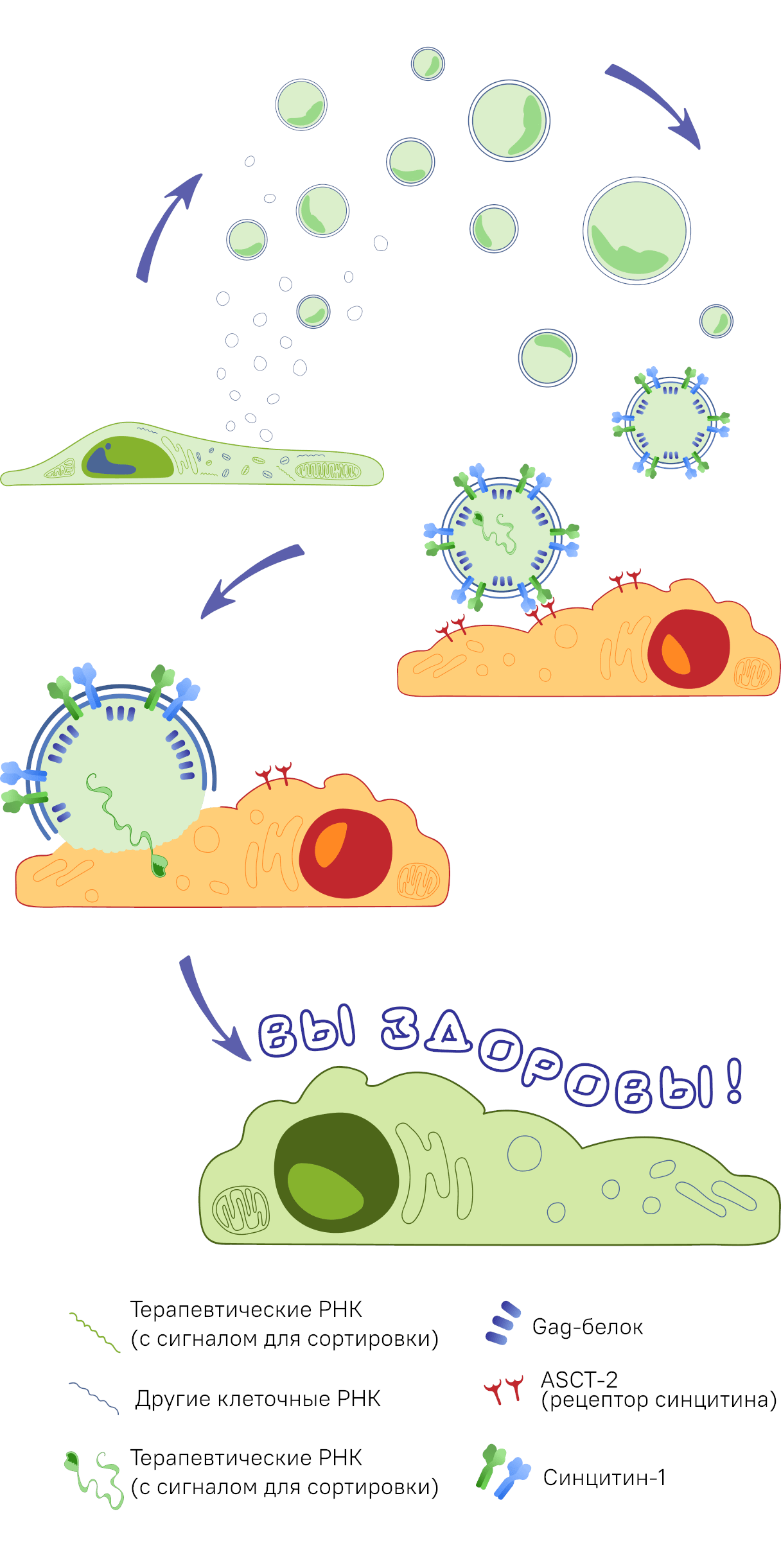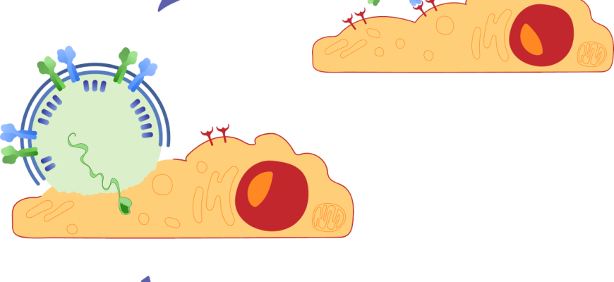 - Активация и связывание: при контакте с целевой структурой происходит связывание с рецепторами.